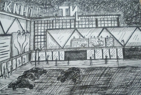 Это было ТЦ и его никак нельзя было спутать с каким-то другим зданием. Огромное, трёхэтажное здание, которое было большим, как в высоту, так и в длину. На его краях то и дело загорались и тухли различные надписи, или постеры к фильмам, да и само здание сдерживало в себе просто неимоверно-огромное количество света. Около него была огромная парковка, которая была полностью заставлена различными машинами.