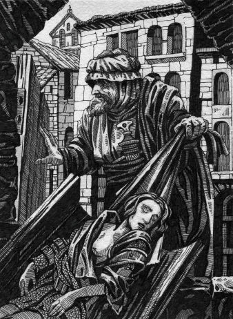 Когда уже всё подготовлено, Возница отмечает что-то в потрепанном реестре, рулоном намотанном на деревянную ось, и сбрасывает труп в подвал, из которого обычно слышится писк потревоженных крыс. Изредка, бывает, одна из них выскочит прямо по желобу и помчится вдоль по улице до ближайшего сточного колодца.