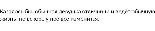 Просыпаясь в 7:00 утра девушка Анна бежала на кухню. Она очень спешила на учёбу к первой паре. Ведь отличником быть не просто. Она шла на золотую медаль и красный диплом. Аннушка была симпатичной девчонкой с веснушками, с круглыми очками и косичками. У неё не было друзей. Так, была одна девчонка подружка, с которой она дружила с 5 класса. Они вместе гуляли, сдавали экзамены. Что касалось личной жизни у Ани был парень русый. Звали его Олег. Он играл в рок-группе. В общем, девчонок-поклонниц было у него очень много. Но с Аней встречался уже год. И Олег подумывал узаконить отношения. Но родители Олега и Ани сказали мы не против, но есть одно условие. Сначала окончите вуз, а потом женитесь.