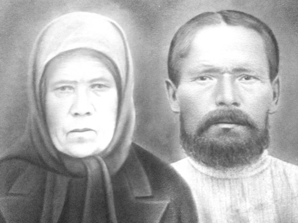 Большакова Наталья Алексеевна (фото 1943 г.) и Большаков Иван Капитонович (фото 30-х гг. ХХ в), затем фотограф соединил эти фотографии и отретушировал.
