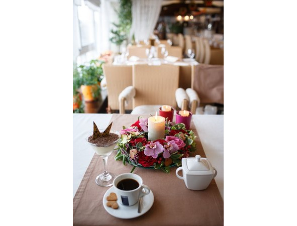 Из кухни принесли разноцветные чашки, огромный чайник красного цвета, расставили зелёные, салатные, жёлтые и оранжевые тарелки вокруг вазы с полевыми цветами и ужин начался!