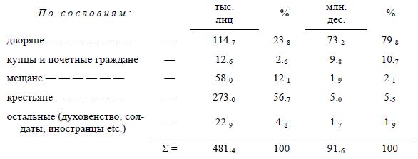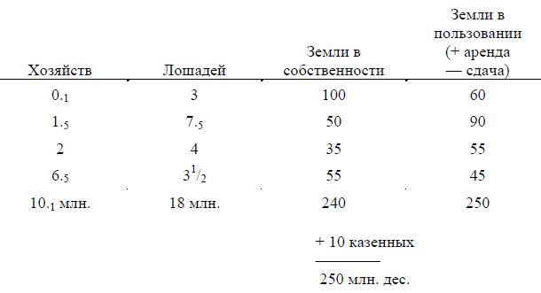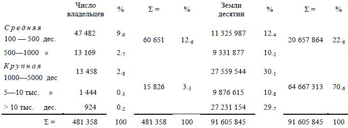 76 тыс. крупных землевладельцев – 85.2 млн. дес. земли + 7.4 млн. дес. – удела 93 млн.
