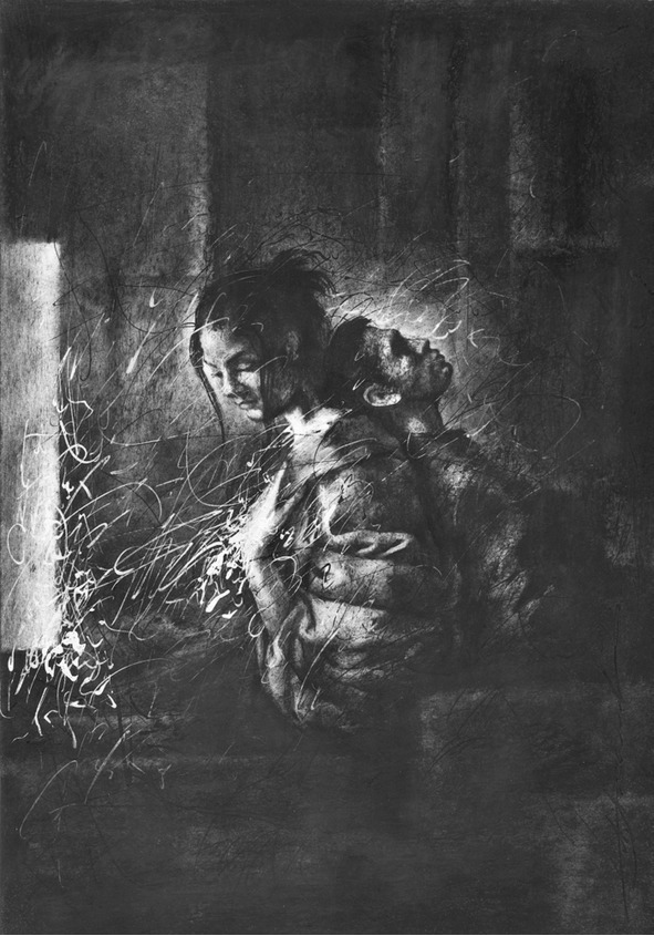 С незаметным приходом ночи в окно вливается туман, жёлтым дыханием комнату заполняя, окутывая телом плотным своим, будто одеялом пуховым.