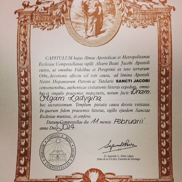Последние несколько дней мне казалось, что такого города, как Сантьяго-де-Компостела, не существует. Давно кто-то пустил слух о красивом Соборе и компостеле, сертификате пилигрима, и в него все поверили. Но нет, и Собор Святого Иакова, и город, и компостела, написанная на латыни, реальны. На вечерней мессе в храме пастор зачитал вслух моё имя. Позади остались триста десять километров, пройденных пешком, через снежные горы, глубокие лужи, прекрасные деревни и густые леса. Через страхи, сомнения, жалость к себе и неуверенность. Да, было холодно, снежно, дождливо, сложно, но красота природы, новые знакомства, лучшее понимание себя стоили этих испытаний! Вчера представляла, что почувствую, когда приду на соборную площадь. Мне казалось, что это должно быть торжественное мгновение. Я заплакала и сломала ветку-посох, увидев Собор. Я не верила в себя, иногда думая о пути назад. Но мне удалось! Смогла! Два дня мне никуда не надо идти – я на своём месте.