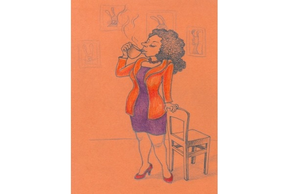 Прошло немного времени, и в комнату, стуча каблуками, вошла тетька. Едва взглянув на картинки, она прошла прямо к столу и увидела чашку, и стала пить, пить, пить… и тоже, почувствовав, что жидкость в чашке и сладка, и горяча, повалилась на пол мертвая…