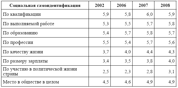 Сложившиеся в России условия конвертации полученного образования в социальный и экономический капитал индивида понижают его удовлетворенность своей позицией в социальном пространстве. В исследовании, проводимом под руководством В. К. Левашова, респондентов просили ответить на вопрос: «Как Вы считаете, какое место в нашем обществе Вы занимаете по своему образованию, профессии, другим сторонам жизни? Отметьте, пожалуйста, по шкале место, исходя из того, что 10 – это высшая, 1 – низшая ступень в обществе».[107]