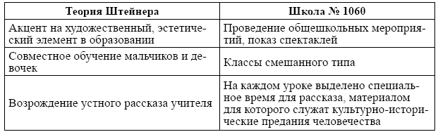 Соответствие педагогического процесса школы № 1060 вальдорфской педагогике