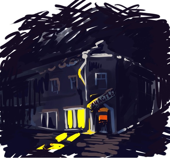 Вечно веселый панк под два метра ростом и исполинской шириной плеч. На его фоне охранник выглядел как провинившийся ребёнок, который съел последнею конфету, не оставив младшему брату. И мужчина в черном пальто, из-под которого выглядывал край бардовой, цвета артериальной крови, рубашки. Картину дополняла моя недельная небритость поверх шарфа и запах утреннего перегара. Мы сели за столик в самом углу и пытались на спор опустить четыре кубика сахара поставленные друг на друга в принесённый чай, при этом не разрушив конструкции.