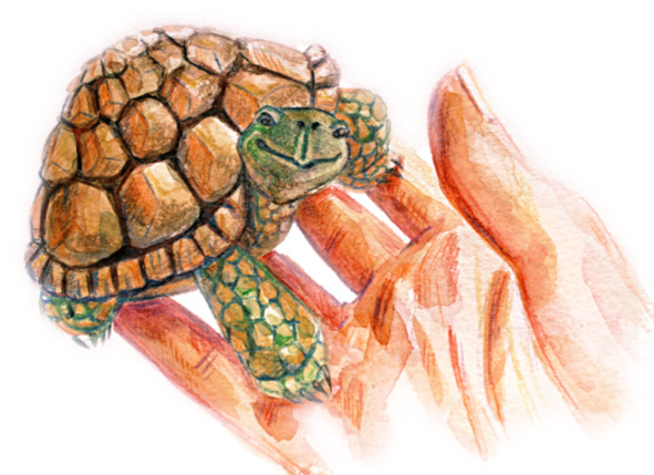 – Возьми меня в руки, повернись три раза вокруг своей оси и скажи: «Я устала, я слаба, я хочу, чтоб черепашка к дому меня отнесла!»