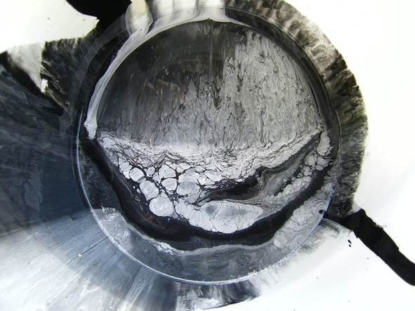 Древнеяпонская техника суминагаши схожа со стрим-артом принципом гравитирования (см. далее). И тот и другой вид искусства подразумевает управление потоками краски или в данном случае – туши, растекающимися по вращающейся плоскости. Однако метод суминагаши более динамичен благодаря свойствам материала – туши с водой. Их отличие в том, что техника суминагаши обладает крайней степенью результативной необратимости, материал не подразумевает исправление ошибок. Поэтому в процессе работы возникает много брака. Что касается стрим-арта, его техника в связи с более густой консистенцией краски позволяет художнику работать с одной и той же картиной на протяжении долгого времени, периодически корректируя изображение. Стрим-арт заимствует у суминагаши метод интуитивного нахождения композиционной целостности в турбулентных условиях. И, конечно, еще одна общая черта этих двух направлений – непредсказуемость окончательного результата.
