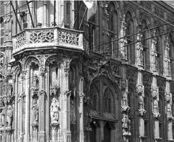 Великолепная по пышности декора Ратуша составлена из двух пристроенных друг к другу зданий, готического и ренессансного, объединенных общей крышей. Двухэтажная готическая постройка с высокими закругленными внизу и в виде трилистника вверху окнами, утопленными в нишах с резными каменными тимпанами, украшена богатым декором из скульптур под балдахинами, заполняющих межоконные проемы. Крышу опоясывает карниз в виде переплетающихся скругленных арок. С углов здания выглядывают эркеры со статуями в больших нишах. В этом дворце была отпразднована пышная свадьба Марии Бургундской и Максимилиана Габсбурга.