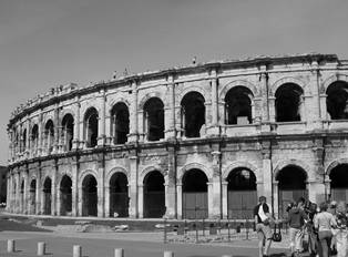 Город сохранил великолепные памятники римской эпохи, самым крупным из которых является арена, построенная, как и римский Колизей, в 1 в. и рассчитанная на 23 тыс. зрителей. Безучастно взирают на город стены этого прекрасно сохранившегося памятника римской эпохи. На своем веку им довелось повидать и марши римских легионов, и поступь идущих на смерть гладиаторов, и войска крестоносцев. Эпохи сменяли друг друга, лишь эти стены оказались неподвластны времени. Два яруса арочных галерей с 34 рядами сидений, поднимающихся на высоту 21 м, представляют в плане овал 133*101 м. Полукруглые арки с пилонами и пристроенными к ним дорическими пилястрами несут на себе верхнюю аркаду, окруженную галереей. Пилоны арок второго яруса оформлены дорическими полуколоннами. В древние времена арена служила для представления боев гладиаторов, а в наши дни на ней проводится коррида фериа, где, в отличие от испанской корриды, быков не убивают.
