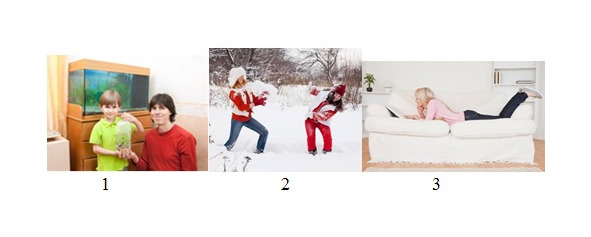 I’ve chosen picture number two. I took this photo last winter when we went to the forest with my friends. Winter is a nice season when people can enjoy going skating, skiing, tobogganing, throwing snowballs and making snowmen. Isn’t it wonderful to tramp down the country lanes on a frosty winter day. Everything is white and it crunches under your feet. It’s a merry time for my friends and me to go to the country. You can see my best friends in the picture. Look! The weather is wonderful. The sky is white and there is a lot of snow everywhere. On the background of the picture you can see trees. The girls are playing snowballs on the clearing of the forest. They are happy. Both of them are wearing warm clothes, because the temperature is fifteen degrees below zero. They put the hats and mittens on. I took this photo just to memorize the moment and showed it to you to refresh memories.