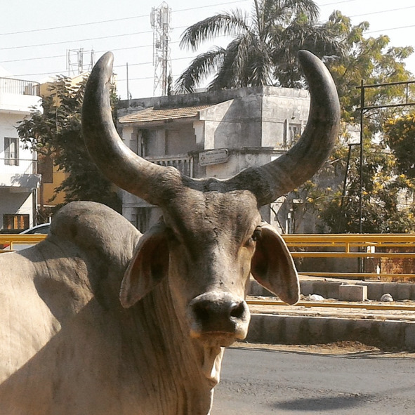 Коров почтительно обходят или объезжают, повышая на них голос только, когда отгоняют от овощных прилавков на рынке.