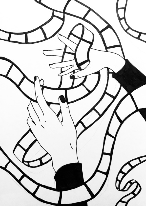 Однажды начался дождь. Маленькая капля попала им прямо на руки. Цвета начали смешиваться. В месте, где их ладони соприкасались появилось серое пятно и стало расти. С каждой новой каплей граница размывалась.