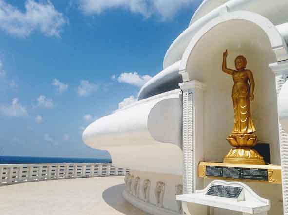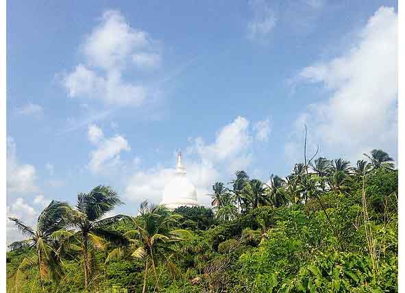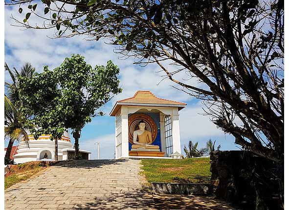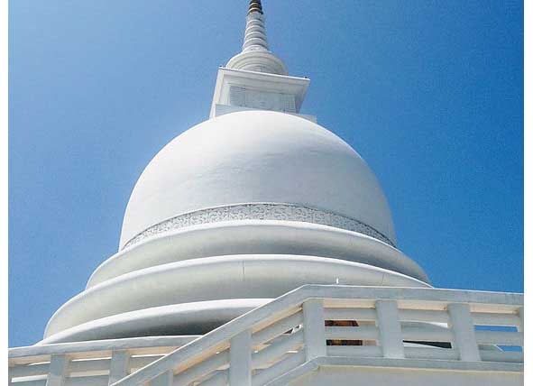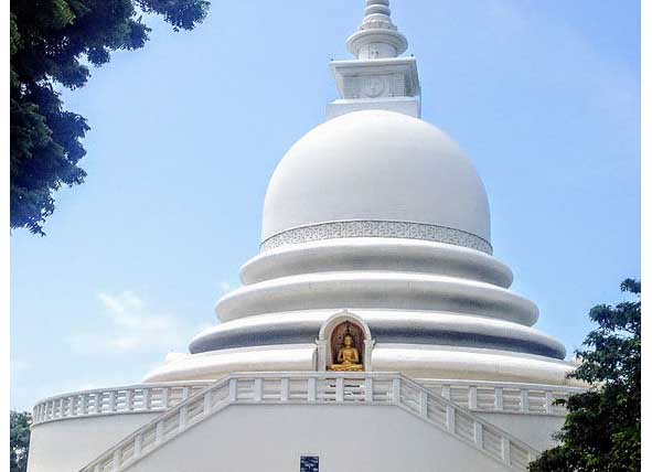 На горе Румассала возвышается прекрасная белоснежная пагода, дар японских буддистов, символ гармонии, единства и мира. Сын короля Суддоданы и Королевы Майи – принц Сиддхартха, чьё имя означает «исполнение всех желаний» смотрит в лазурную даль. Сразу после рождения он сделал по семь шагов в каждом из направлений сторон света. Правой рукой указал в небо, левой рукой – вниз, чтобы объявить цель своего рождения. «Сверху и под небесами меня почитают. Три мира наполнены страданиями. От них всех я принесу освобождение».