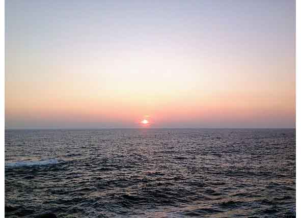 The pink glint of the setting sun stretched over the waves, went out in the clouds and the veil of darkness slowly covered the Indian Ocean…