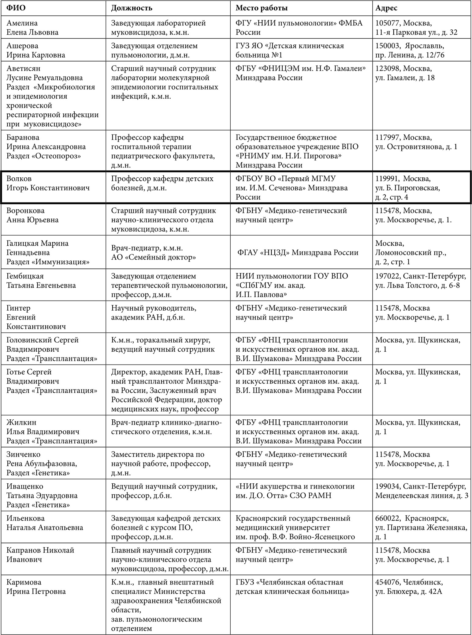 Эксперты Консенсуса «Муковисцидоз: определение, диагностические критерии, терапия»