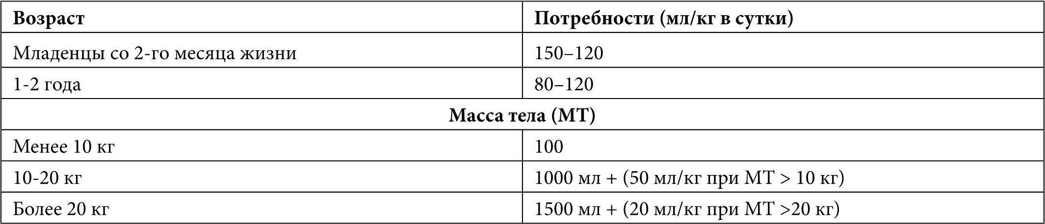 Таблица 4. Суточные потребности водного обеспечения детей [28]