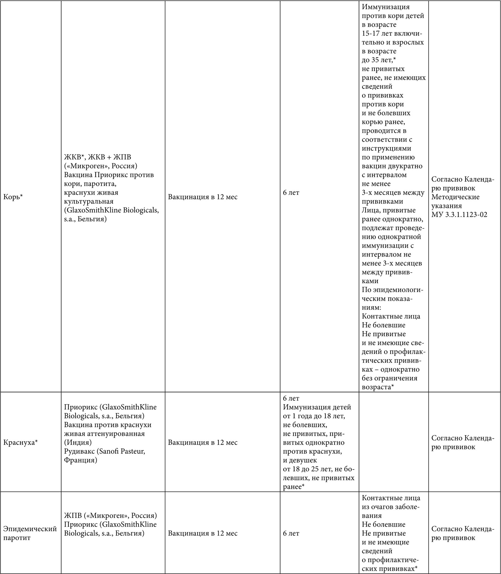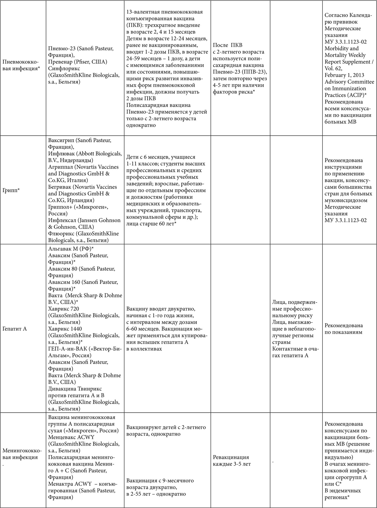 Таблица 1. Вакцинация больных с муковисцидозом (* – данные по применению у взрослых)