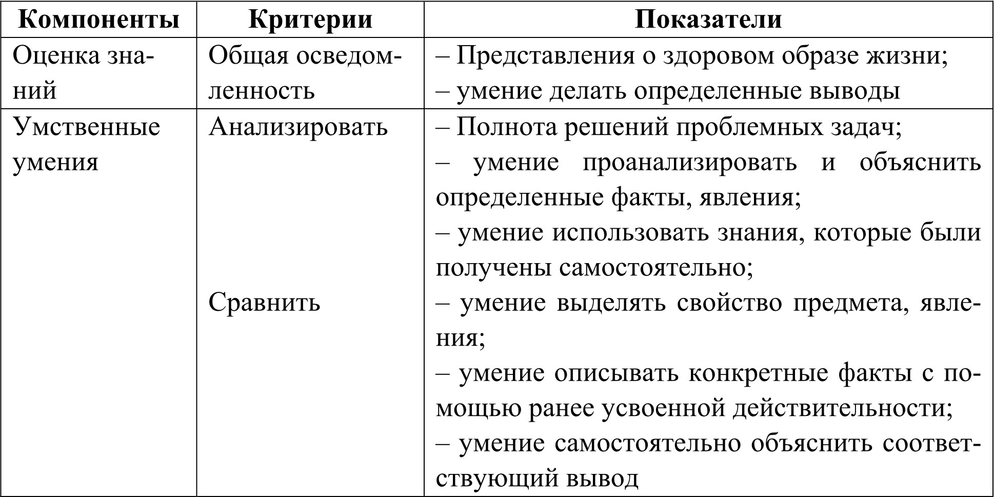 Компоненты, критерии и показатели жизненного опыта дошкольников