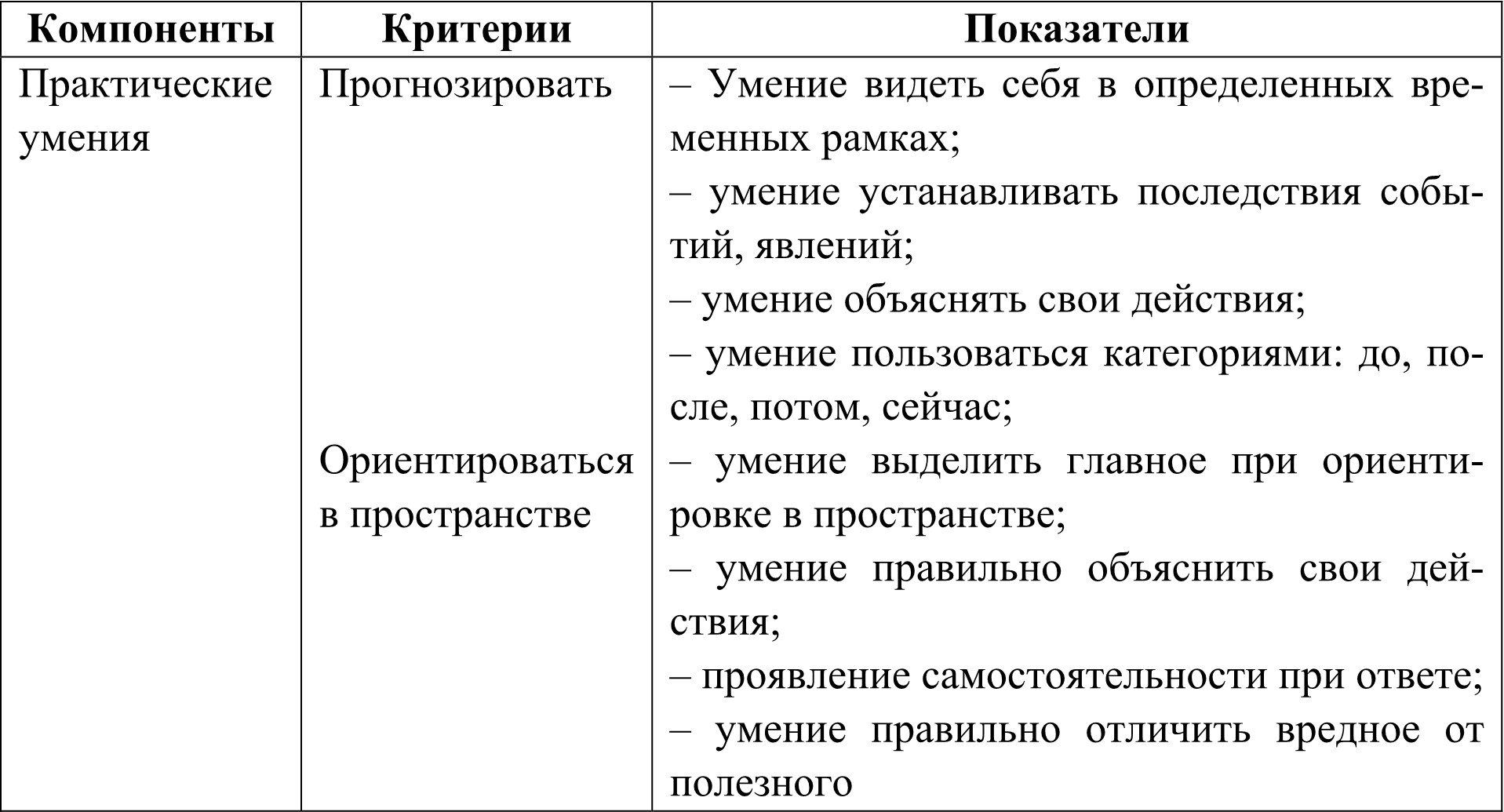 – практические умения (прогнозирование, ориентировка в пространстве).