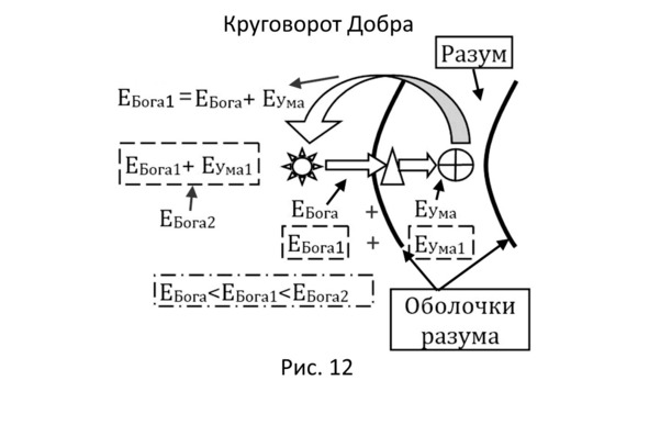 Таким образом, посредством круговорота Добра мы совершенствуемся в своём разуме, ведь его сила будет постоянно расти, и быстрыми темпами двигаемся к Богу, увеличивая энергетику нашего с Ним контакта. Мы здесь постоянно видим возможность увеличения божественных энергий в своём разуме, Е <Е <Е. Чем сильнее будет такой круговорот энергий Добра, тем чище и светлее будет становиться наш разум, тем открытие будет наша Душа и тем ближе будет к нам Бог. Это будет быстрым совершенством человека, что скоро приведёт его к границе перехода в новый вид. Бога Бога1 Бога2