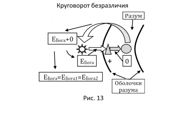 После обращения в круговороте Безразличия разум возвращает данную ему божественную энергию, не увеличивая и не уменьшая её, как это показано на рисунке 13. Это означает, что наш разум эту божественную энергию не принял и даже оттолкнул назад к Богу.