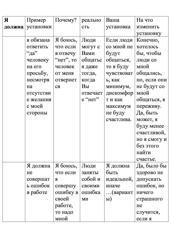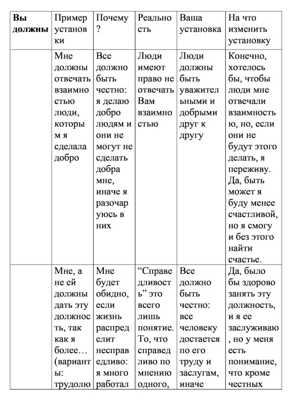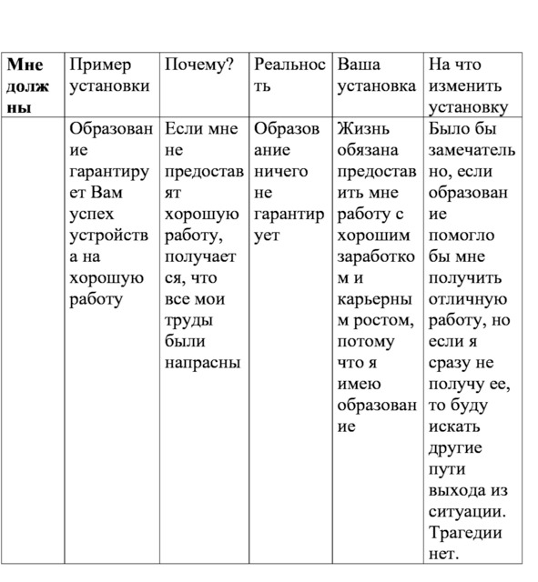 Каждый раз, когда Вы чувствуете, что Вам мешает фраза Я ДОЛЖНА, нужно ее проработать. Это касается абсолютно всего.