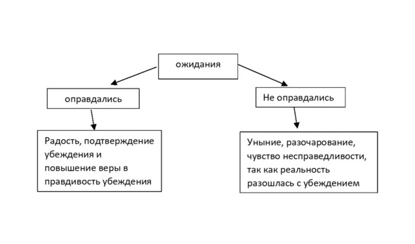 Девушка мечтает выйти замуж (я должна выйти замуж). И вроде она образована, и умеет готовить, и в ней достаточно прекрасных личностных качеств. Только вот имеет одну установку: она должна быть красива. К сожалению, так уж вышло, что реальность не наградила ее особыми внешними данными. Ну и, по ее мнению, естественно, посмотреть на нее могут с тем условием, что она красива (причем, у каждого свой параметр: длинные ноги, светлые волосы, маленький вес, пухлые губы и пр.). Она вроде и видит окружение, в котором «более печальные варианты по внешности» уже успели выйти замуж, но не концентрируется на этом. И, как это бывает, начинается поход к косметологу, затем курсы по уверенности в себе, прибавляем сюда различную дорогую одежду. Что получаем? А получаем негатив, поскольку ее ожидания не совпадают с реальностью. Да, она не очень красива, и да, она не замужем. Все правильно? По ее понятиям – да.