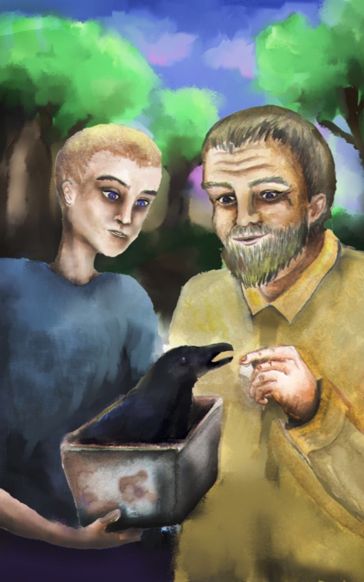 – Я что же, не рассказывал тебе? – взметнул руки старик. – Лет двадцать с хвостиком назад, гуляя по этому самому парку, я наткнулся на вороненка. Этот чудик упал с дерева, так как был еще мал и не умел летать. Но это еще и не самое интересное! Оказывается, у него с головой не все в порядке, и он меня так веселит этим!