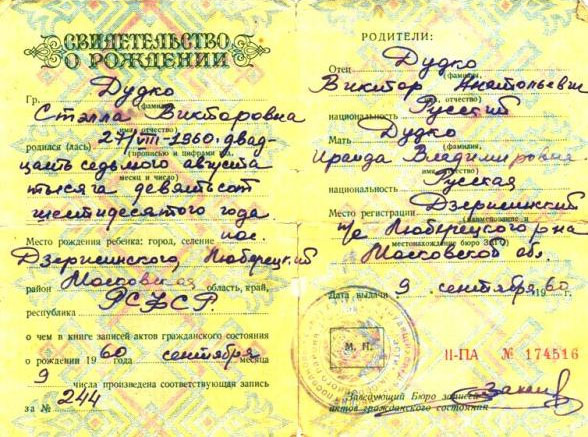 Надо сказать, что, когда мы её регистрировали, женщина в загсе не знала, как правильно пишется это имя. Мы ей подсказали – СТЭЛЛА, через – Э. А, оказывается, правильно пишется через – Е. Но так и зарегистрировали, как мы подсказали – СТЭЛЛА.