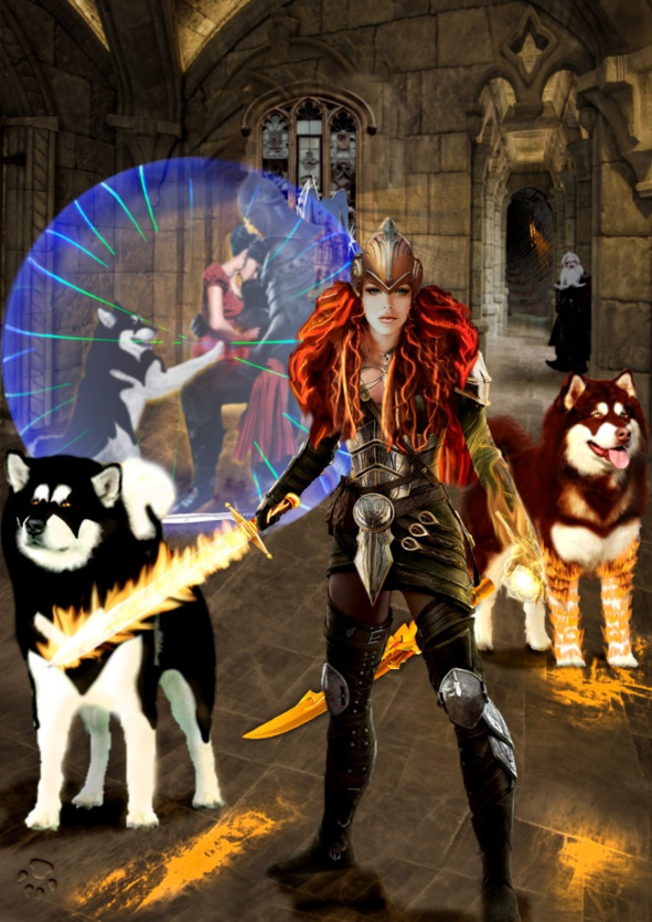 Ларри кивнул и поднял голову. Защитный Щит уже убрали. Впереди стояла Шанталь с «Молнией» в руках. Меч светился и от лезвия исходили ощутимые волны жара. Справа стояла Дэйли. Вокруг ее передних лап завивались огненные змейки. Когда миури увидела, что Щит снят, змейки втянулись в густую шерсть на лапах. Слева стоял Дэйл. Никаких видимых проявлений угрозы. Только на гранитном полу красовался свежий отпечаток его лапы. Словно на мягкое масло поставил. Неподалеку стоял великан. Рядом Баинлот, не сводившая глаз со светящегося меча. Она подняла глаза к лицу девушки и увидела, как внутри зрачков потухают отблески пламени. Широкоплечий гном зачарованно смотрел на отпечаток собачьей лапы в гранитном полу и почесывал затылок. Возле гнома стоял невысокий смуглый эльф с серебряными нитями в черных волосах. Со странным выражением лица он смотрел на доспехи Ларри и на лежащую у него на руках девушку.