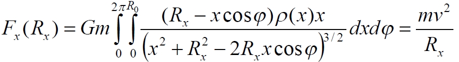 Выведенное интегральное уравнение позволяет построить кривую вращения по графику плотности вещества галактики. Для достижения поставленной цели, определения функции плотности по кривой вращения, нам, очевидно, нужна и функция этой кривой вращения.