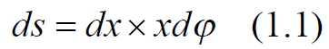Дифференциал массы обруча определяем через дифференциал площади ds, который равен