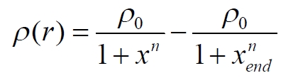 Считая, это не совсем верно, вносим небольшую корректировку в уравнение плотности, сделав её значение на краю диска равной нулю