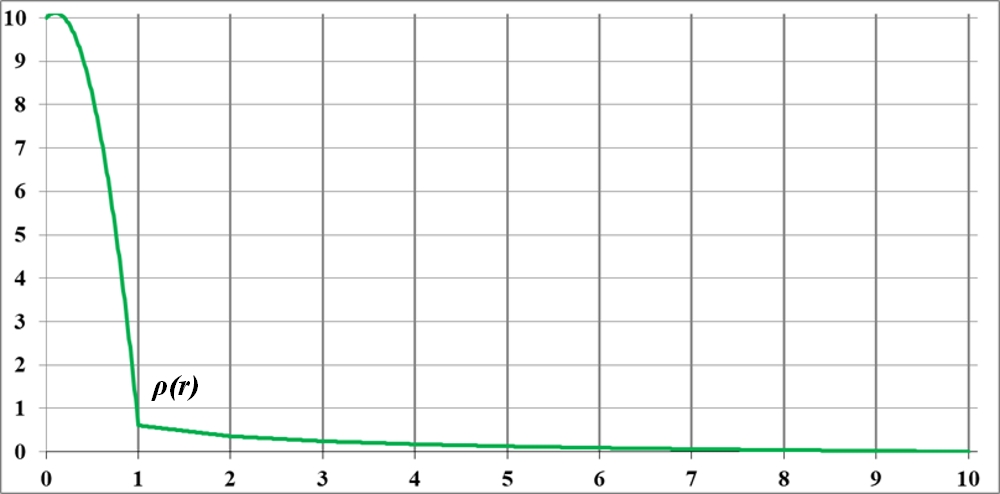Разумнее было предположить, что плотность ρ0 неизменна не только в точке, а на некотором интервале начального участка, в центральной части диска. После корректировки, установки плотности ρ0 на таком участке график приобрёл такой вид рис.2.4.