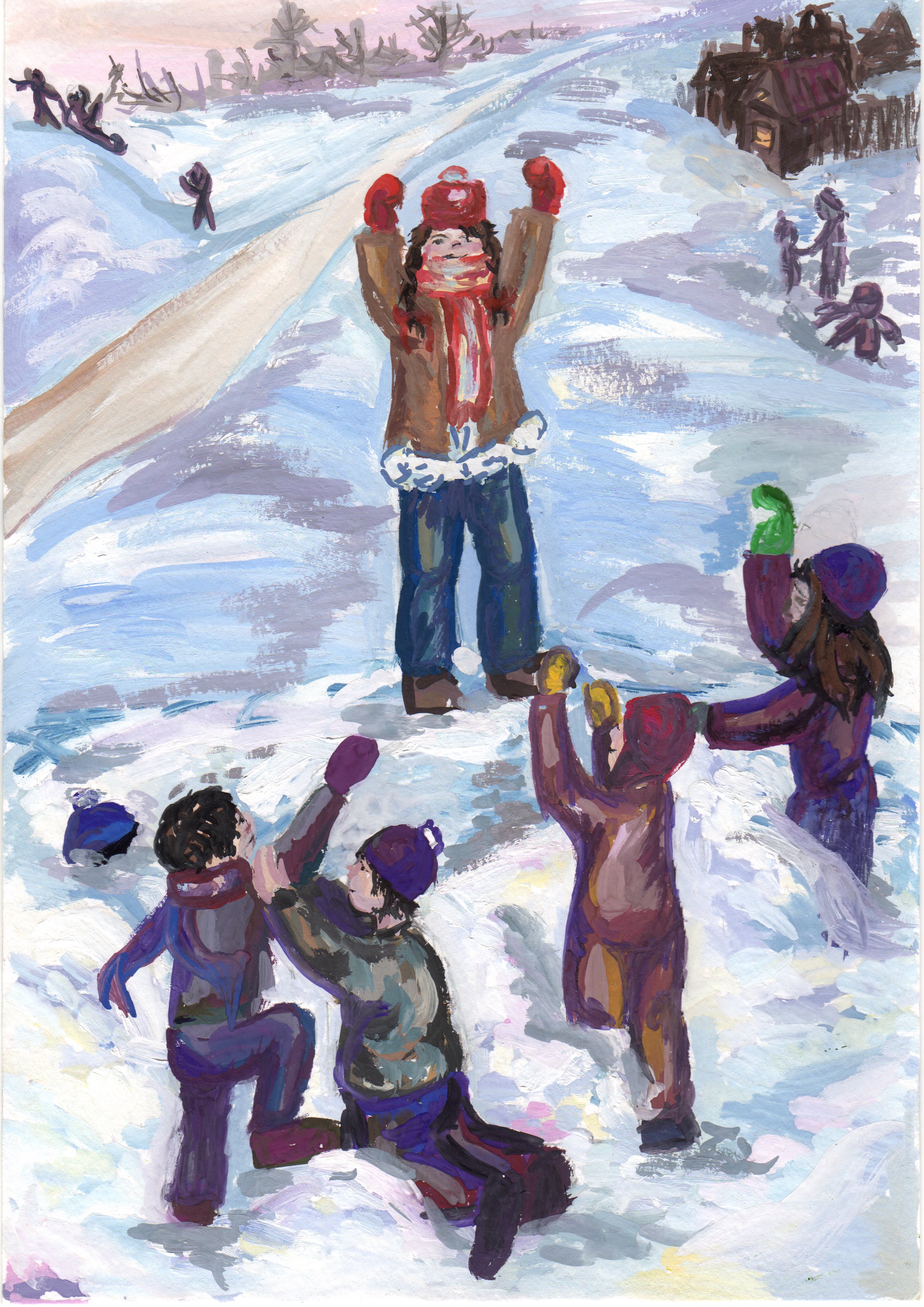 Накануне мы с соседскими ребятами играли в «Крепость». Классная игра! Сначала все строят из снега крепость, потом делятся на две команды. Первая команда называется агрессоры, их задача – покорить крепость, то есть спихнуть оттуда защитников. Вторая команда – защитники, должны защищать крепость, то есть не давать возможность забраться на крепость агрессорам. Если агрессоры возьмут верх, то становятся защитниками, и игра начинается заново. Было очень весело. Мы играли, пока не стемнело. Затем всех позвали домой, и игра закончилась.