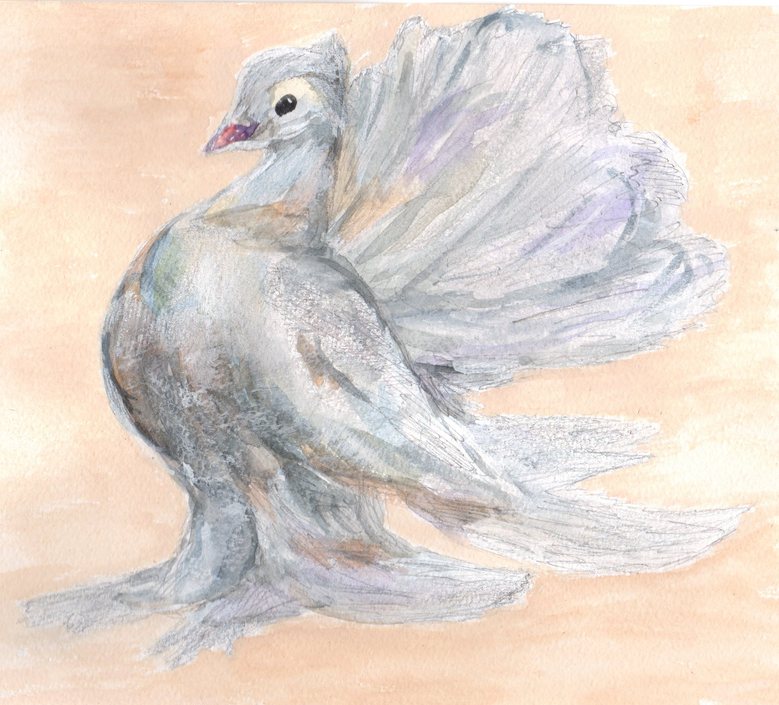 Да, я очень хочу рассказать стихотворение тем более, что сама его сочинила. Правда-правда. Это получилось совсем случайно. Сперва я его сочинила в голове и рассказала бабушке. Бабушка сказала, что это гениально, и велела эти стихи записать на листочке. Вечером я рассказала их папе и маме. Им тоже очень понравилось. Вот тогда-то мама и придумала прочитать его на ёлке. Мне и самой очень нравится мой стишок. Правда, он немного грустный, потому что про голубя, который целый месяц жил у нас в гараже. Он появился совсем неожиданно, просто прилетел, и всё. Рано утром голубь куда-то улетал, а вечером снова возвращался в гараж, садился на полочку, где папа хранит всякие баночки, и сидел там грустный-грустный. Бабушка сказала, что это он по своей голубятне скучает. («Голубятней» называется дом для голубей). Заблудился, наверное. Голубь был очень красивый: белый, как снег, клювчик маленький, глазки-бусинки, а на ногах юбочки из перьев. Я как-то хотела его погладить, но голубь испугался и стал метаться от одной стены к другой. И мы решили больше его не беспокоить. Папа смастерил маленький стол, где мы оставляли для голубя воду и зерно. И так целый месяц. Но однажды голубь не вернулся. Наверное, он всё-таки нашёл свою семью, и в гараже сразу стало как-то пусто. Мы несколько дней ждали голубя, ждали, а потом перестали ждать. Мне стало грустно, и в моей голове вдруг получился стих.