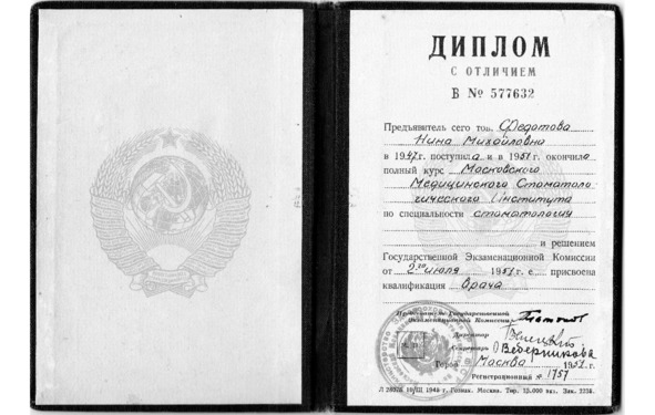 В 1951 году я окончила институт с красным дипломом. Мне предстояло учиться в ординатуре. Надо сказать, что первые два года учебы в институте я жила у дедушки, у меня была отдельная небольшая комнатка, в общем, все необходимые условия для жизни и занятий. Во время моей учебы на старших курсах из Куйбышева приехал приемный дедушкин сын с семьей и надо было всем каким-то образом размещаться. Я перешла жить на квартиру в доме рядом с институтом. В нем жили иногородние студенты, среди которых были даже именитые люди: племянница певицы Большого театра Надежды Обуховой и племянница любимой актрисы И. В. Сталина Аллы Тарасовой.