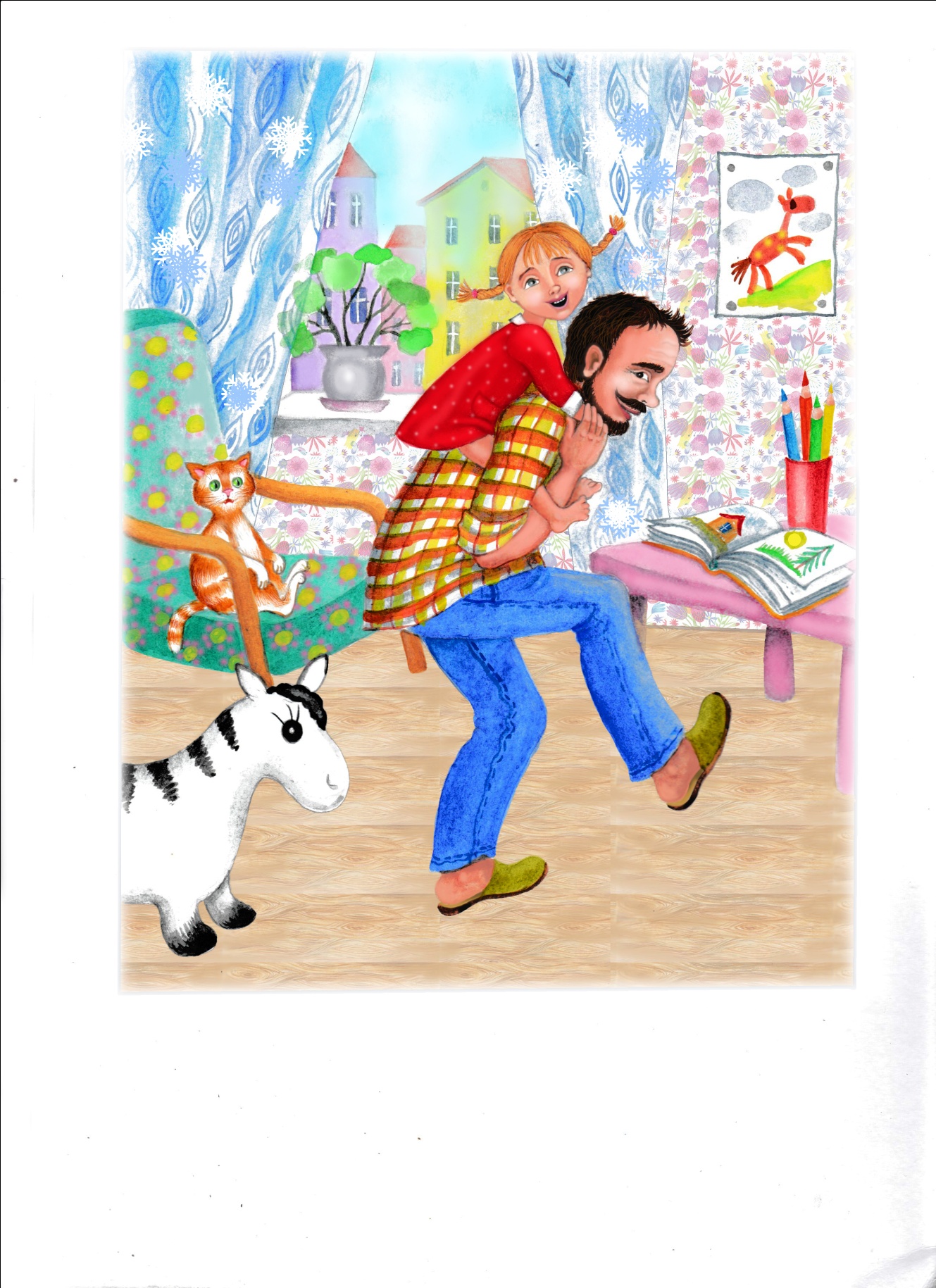 Маришка обожала играть с папой. С ним было очень весело. Папа умел рычать, как настоящий медведь и скакать не хуже самой быстрой лошадки! Маришка вскарабкивалась к нему на спину и крепко обнимала за шею. Ударяя пяткой в бок, размахивала воображаемым хлыстом, кричала: «Но! Поехали!»