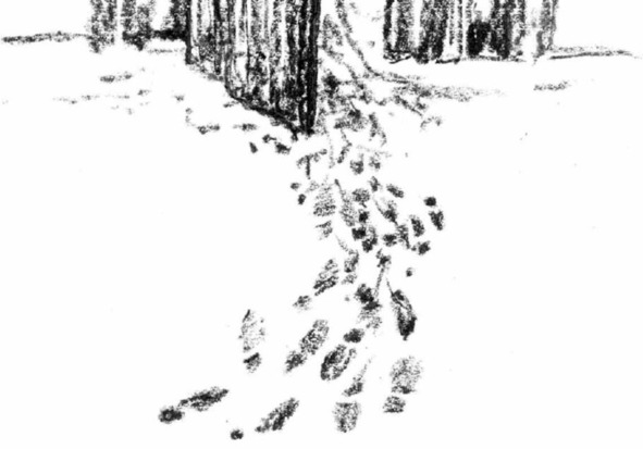 Низкие тучи крадучись ползли по небу. Уже различались верхушки деревьев. Падал редкий снег. Сначала шли по следу, оставленному Жмыхом. Почти сразу наткнулись на бивак, разбитый ворами. Костёр ещё дымился.