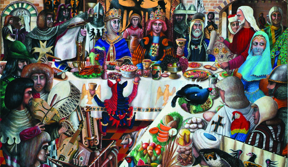 . L'une des coutumes les plus courantes au Moyen Âge anglais était de célébrer Noël par de grands banquets où le plat principal était le paon vivant. Le bel oiseau a été préalablement tué et soigneusement dépouillé pour ne pas abîmer le plumage, puis farci d'œufs et d'épices et rôti. Finalement, il a été "couvert" de sa peau et décoré d'or. Arrivés en Amérique, les frères pèlerins ont presque immédiatement remplacé le paon par la dinde, qui est devenue le symbole gastronomique du Noël américain....