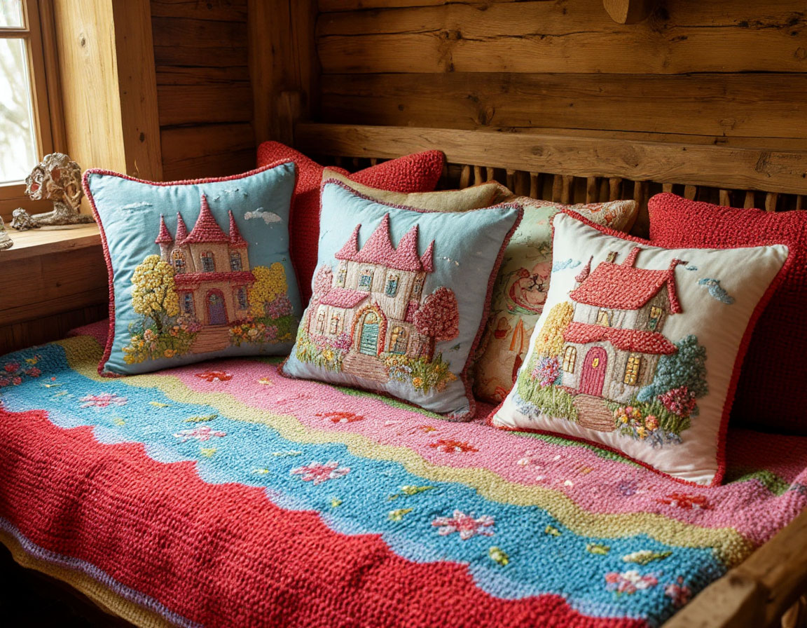 Королевство маленькой принцессы расположено на мягком зелёном ковре в разноцветную крапинку. Это вид сверху. А внизу трава-мурава и луговые цветы.