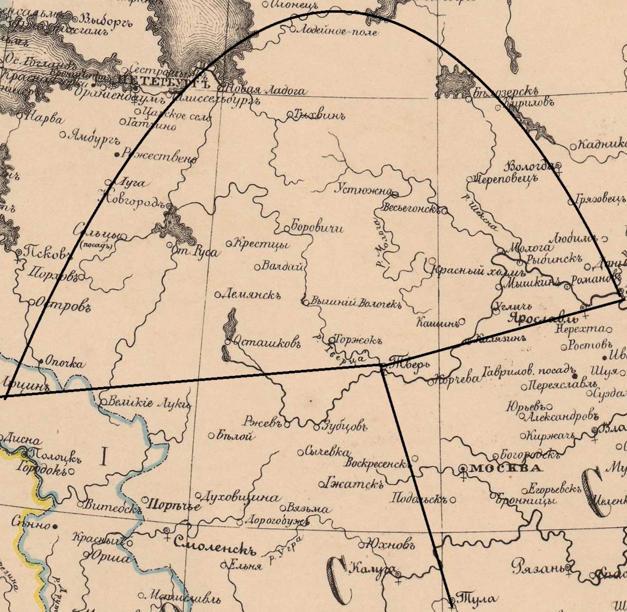 Кострома. На протяжении своей истории этот город много раз горел. Можно даже сказать, что пожары стали одним из определяющих факторов развития города. К примеру: в 1213 году ростовский князь Константин Всеволодович сжег город, принадлежавший его брату, Юрию Всеволодовичу Долгорукому, и отвел пленных жителей города в удельный Ростов. Город восстановил владимирский князь Ярослав. Он же отстроил на левом берегу Волги у впадения в нее реки Сулы в районе пересечения современных улиц Пятницкой и Островского первый Костромской кремль с соборным храмом во имя своего святого покровителя – великомученика Феодора Стратилата. Но не суть. Давайте поговорим что происходило с горожаноми. А происходило что то странное. Каждый из Костромчан утверждал что видел на улицах странного человека, который рассказывал им странные истории, по типу: "…Мин херц представь, поплыл как то зимой в путишествие и встечал постоянно каких то странных дурачин кричащих что то типо "Dzien dobry!", а я не пойму что хотят…". Так вот поняли горожане, что что-то не так, думали что опять какого то Лжеправдия отправили и думали избавится от него, так как только они собирались сразу пожары начинались. Как к примеру в 1413 году. Кострома снова сгорела. Сокрушительный пожар, по свидетельству летописца(запомните его), уничтожил до тридцати церквей, не говоря уже о множестве жилых построек. Тогда же, видимо, сгорел и первый Костромской кремль. К счастью, глубоко чтимая костромская святыня – Феодоровская икона – чудесным образом уцелела, но на месте города было пепелище. Разобрались, теперь давайте возьмём все города про которые я упоминал и соеденим их на карте.