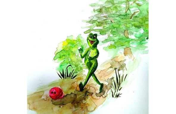 Спрыгнул лягушонок и дальше за клубком пошел. Идет, тихо вокруг и только стон протяжный слышится. Боязно стало Нафоне. А клубок весело скачет дальше, и он идет за ним. Сколько шел – не знаю, но решил присесть отдохнуть на пеньке, что встретился в лесу. Достал пирожок, добрым словом Печку вспомнил и только откусить захотел, как услышал писк и стон из-под земли. Удивился и давай под корни смотреть, увидел маленького мышонка, что прятался в них. Позвал мышонка к себе на пенек, разделил пирожок на двоих и тихо жуют вдвоем. Тут опять стон из-под земли слышен… Спросил лягушонок мышонка: «Что здесь происходит? Не знаешь, почему стон из-под земли идет и земля дрожит?» Отвечает ему мышонок: «Беда у нас – Земля-Матушка заболела, это ее стон ты слышишь и ее дрожь ощущаешь, а как ей помочь – мы и сами не знаем». Но наш Нафоня смелый лягушонок был и стал думать – рассуждать.