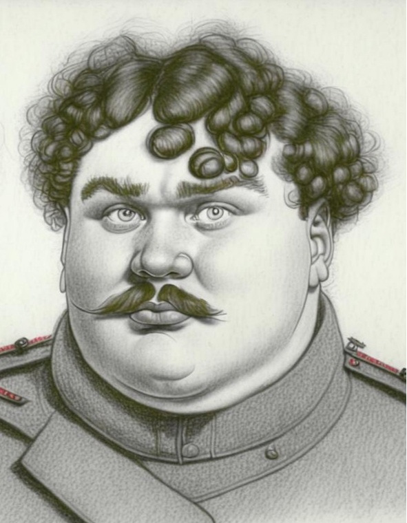 Подходит к нему мужик лет сорока, явно с лишним весом, с рыжими кудряшками, пухлым лицом со вторым подбородком, впалыми маленькими глазами, и странными почти мушкетерскими усами. Вся его внешность вызывали исключительно улыбку. В руках у него стакан пива: