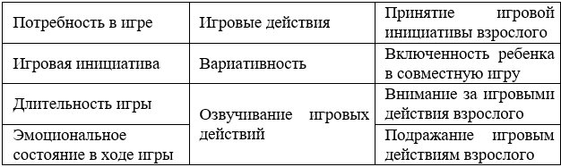 Для оценки уровня развития игровой деятельности используются показатели, представленные в таблице 3.