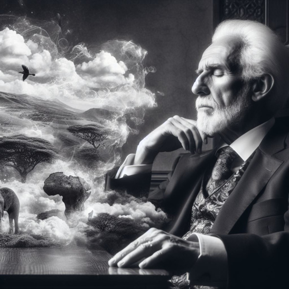 Господин Н. сидел в мягком кожаном кресле и, закрыв глаза, размышлял. Перед его мысленным взором проносились никогда не виденные картины мягких пастельных тонов, сумрачные ночи, когда луна то скрывается за деревьями, то возникает, а сами деревья – как призрачные храмы, темные и полные прохлады. Перед его мысленным взором мелькали тропинки, заросшие душистой травой, на стеблях которой еще дрожит дыхание дождя, капли расплавленного серебра, прикосновения неведомых рук, струи багряного света. Он видел опаловые цвета, перемешанные с мерцающим сиянием лагун. Холодные гроты, наполненные синевой, запахами водорослей и тихим, таким тихим, далеким и призрачным капаньем воды с ледяных потолков. Господин Н. позволил себе глубоко вздохнуть и прыгнул с обрыва вниз, и пока он летел рядом с искрящейся струей водопада, весь окутанный облаками брызг, похожий на растрепанную гордую птицу, его жена приказала подавать обед. Он разбился об искрящуюся поверхность воды и быстро выбрался на берег. Вдалеке, за двумя утесами, скрытыми в утренней дымке, рокотал прибой. Служанки начали сервировать стол. Солнце уже встало. Крики птиц и шелест огромных масс воздуха, пробегающих над холмами, заставили его броситься вперед и бежать изо всех сил. Так он и сидел в своем мягком кожаном кресле, в богато обставленной гостиной, в своем собственном доме в одном из душных городов измученного старого света.