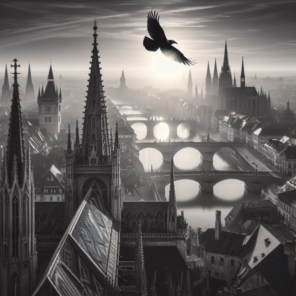 Я стою посреди людского потока. На мне черный сюртук, в моих руках фамильная трость, мои волосы напомажены и приведены в порядок, мое лицо гладко выбрито и глаза глядят из глубины глазных впадин. Кроме сюртука, на мне мое тело. Мое тело дышит; я чувствую прикосновение белой накрахмаленной рубашки, чувствую, как пальцы едва заметно дрожат, сжимая трость. Мой ум мечется от одного чувства к другому: от обоняния к осязанию, от осязания к вкусу дыма во рту, от вкуса к созерцанию длинной, заполненной народом улице, которая освещена заходящим солнцем, чьи лучи пробиваются сквозь мягкий шелк городских туманов – прозрачных, невесомых, едких, трепещущее-сладких, ослепительных. Солнце садиться, высокие башни домов, дворцов и соборов похожи на темно-синие силуэты, парящие в его бархатном свете. Улица полна людей. Они идут прочь от дневного светила, навстречу надвигающейся ночи, которая уже смотрит, шириться изо всех углов, подворотен и маленьких боковых улочек. Ночь уже набирает силу под мостами.